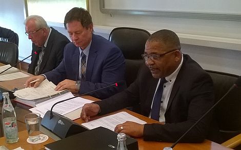 Die Rede von Bürgermeister Conrad Poole wurde noch kurzfristig in die Tagesordnung aufgenommen. Poole leitet eine Delegation der "Drakenstein Municipality", die seit einigen Tagen im Rahmen eines Programms "Klimapartnerschaften" in der Region weilt.