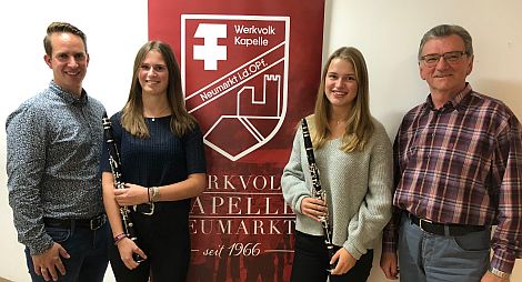 Sophia Kurzendorfer und Johanna Frank sind zwei Eigengewächse der Werkvolkkapelle Neumarkt. Martin Miess hat die beiden jungen Frauen an der Klarinette sowohl als Instrumentallehrer wie auch als Dirigent während ihrer Zeit im Jugendblasorchester und nun in der Werkvolkkapelle jahrelang begleitet.