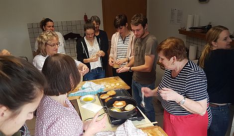 Heidi Rackl hatte Walli Hierl aus Litzlohe zu einem Küchle-Backkurs eingeladen, die den