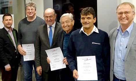 Abschließend ehrte Landrat Willibald Gailler als BRK-Kreisvorsitzender Herbert Fischer für 20 Jahre als "berufene Persönlichkeit" sowie Uwe Suchomel und Winfried Fügl für 45 Jahre ehrenamtliche Arbeit.