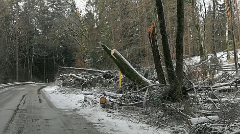 Die Feuerwehr wurde mittlerweile mehrere Male gerufen, weil Bäume auf die Straße fielen und diese nicht mehr befahrbar war.