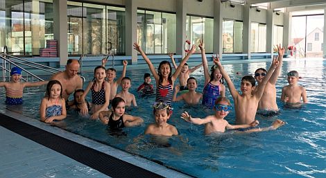 Und dann hieß es auch noch: „Auf in die Umkleidekabinen“. Das ließen sich die Kinder nicht zweimal sagen und sprangen kurz darauf vergnügt ins 28 Grad warme Nass.