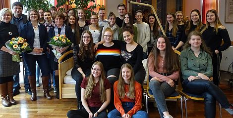BRK-Kreisgeschäftsführer Klaus Zimmermann sowie Eva-Maria Fruth, die für die Organisation zuständig ist und als Bindeglied zwischen Schule und den Ausbilderinnen wirkt, gratulierten zusammen mit Vertretern der Schulleitung.