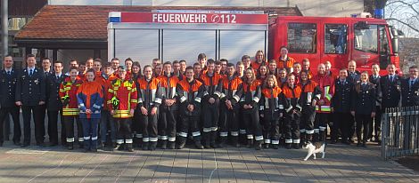 Die Prüfung fand im Feuerwehrhaus in Holzheim statt. Die 13 Prüfer bescheinigten den Teilnehmern nach dem Theorietest und vier praktischen Prüfungsabschnitten hohe Motivation und Wissenstand.