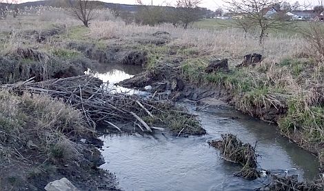 Ein zerstörter Biber-Damm an der Sulz bei Sondersfeld