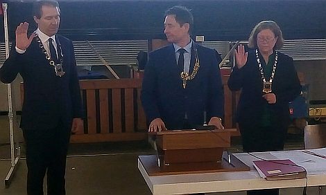 Einige der Strippenzieher hinter den Kulissen haben sich offenbar verrechnet: weil das Amt des ersten Vertreters von OB Thumann (UPW) traditionell der stärksten Fraktion zusteht - das ist die CSU, die zwar bei den Sitzen mit der UPW gleichauf ist, aber ein leicht besseres Wahlergebnis erreicht hatte - gab es ganz offensichtlich Absprachen zwischen den beiden großen Fraktionen: die UPW stellte keinen Gegenkandidaten auf und wählte den von der CSU vorgeschlagenen Markus Ochsenkühn mit - er erhielt prompt 34 der 41 abgegebenen Stimmen.