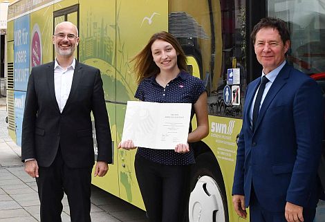 Die Stadtwerke erhielten eine Urkunde für die Einführung der Abbiegeassistenten bei den neuen Stadtvussen