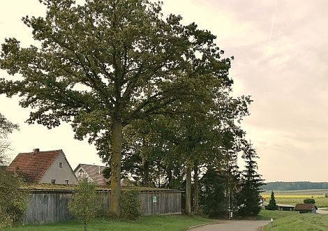 sehr nah an der Straße und somit auch nah am Nachbargebäude. Diese eine Eiche muss wohl geopfert