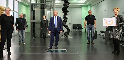 Zusammen bringen es die Jubilare auf ein knappes halbes „Jahrtausend“ Betriebszugehörigkeit. Unser Foto zeigt die Jubilare mit 30jähriger Betriebs-Treue