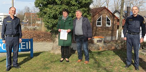 „Frau Müller hat echten Bürgersinn und viel Zivilcourage bewiesen“, sagte der Neumarkter Polizeichef Polizeidirektor Michael Danninger, der ihr bei einer Zusammenkunft zusammen mit ihrem Lebensgefährten im Namen des Polizeipräsidenten Norbert Zink den Dank aussprach und als Anerkennung eine kleine Belohnung überreichte.