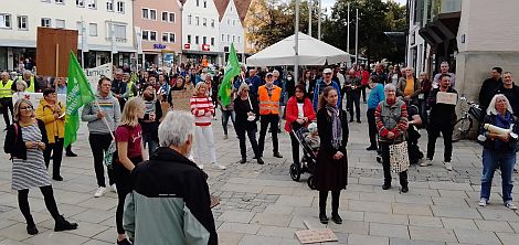 NEUMARKT. Mehrere Hundert Menschen demonstrierten am Freitag vor dem Neumarkter Rathaus „für eine lebenswerte Zukunft und soziale Gerechtigkeit“.