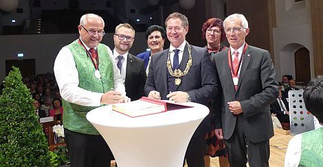 Die geehrten Gäste aus Mistelbach trugen sich beim Festakt ins Goldene Buch ein