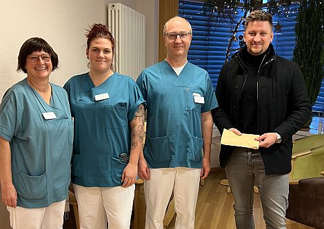 Chefarzt Dr. Jörg Filitz und Stationsleiterin Lisa Siegert bedankten sich beim Spender. Mit dem Geld sollen spezielle pflegerische Hilfsmittel, wie zum Beispiel ein Rollstuhl oder eine Aufstehhilfe zügig beschafft werden können.