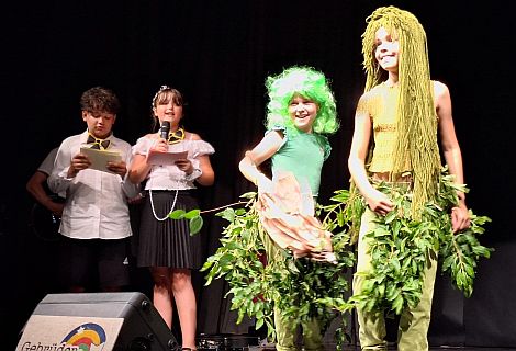 Mit einer „Umweltmodenschau“ unterhielten die Kinde rbei der geburtstagsfeier des Bundes Naturschutz