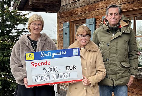 wir berichteten) insgesamt zwölf Tonnen erstklassige Kartoffeln vor der Vernichtung gerettet und übergab jetzt eine Spende in Höhe von 3000 Euro an die Diakonie Neumarkt und Nürnberger Land. Die Aktion fand Mitte Oktober vor dem "Knödelretter-Werksverkauf" in Neumarkt statt und wurde von zahlreichen Kunden und Mitarbeitern unterstützt.
