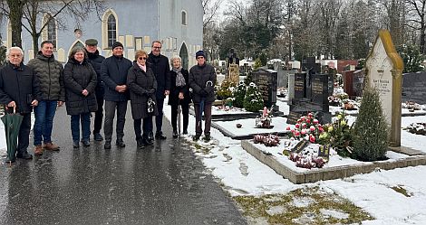 Lokalpolitiker und Familienmitglieder trafen sich an Romstöcks Grab im Neumakter Friedhof