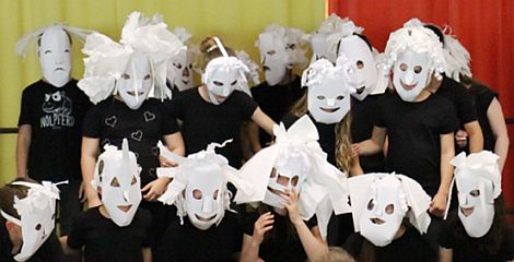 Die von den Schülern gebastelten Masken kamen bei der Abschluss-Aufführung zur Geltung