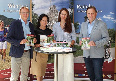 Stellvertretender Landrat Josef Bauer präsentierte die Broschüre im Landratsamt mit Abteilungsleiter Michael Gottschalk, Sachgebietsleiterin Isabel Meier und Tourismusreferentin Christine Riel.