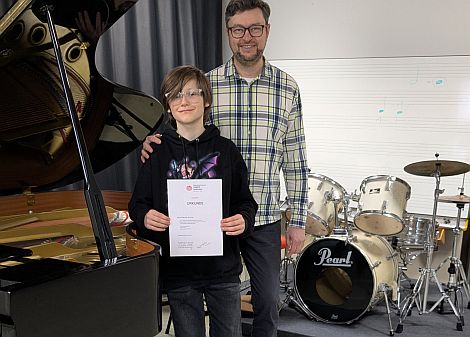 In der Solowertung erreichte Noel Bäumler in der Alterskategorie 3 am „Drum-Set (Pop)“ einen 2. Preis. Mit seiner energiegeladenen und technisch versierten Darbietung zeigte er eindrucksvoll sein musikalisches Können, hieß es.