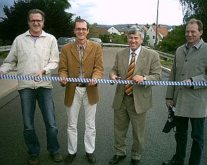 Am Dienstag-Nachmittag konnten nun OB Alois Karl, Werner Schütt vom Stadtbauamt, der planende Ingenieur Robert Renker und Udo Wittl von der Baufirma Walthelm die Brücke freigeben.