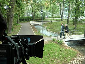 Dabei hatten sie auch Interviews mit dem damaligen Oberbürgermeister Alois Karl und Architekt Johannes Berschneider im Museum Lothar Fischer aufgezeichnet. Die Außenaufnahmen hat das insgesamt siebenköpfige Team des Bayerischen Fernsehens am Museum Lothar Fischer und am Reitstadel-Anbau aufgenommen.