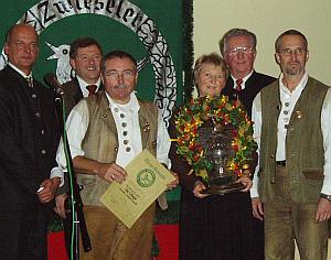 Der begehrte Wanderpokal "Zwiesler Fink" ging in diesem Jahr nach einstimmigem Votum der Jury an die strahlenden Sieger Edith Hilbich, Bernhard Hilbich und Roland Frank.