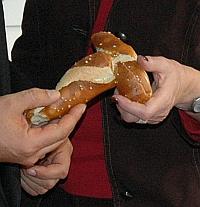 Ein Oberbürgermeister zum "Anbeißen": T.T. verteilt T-Brezen