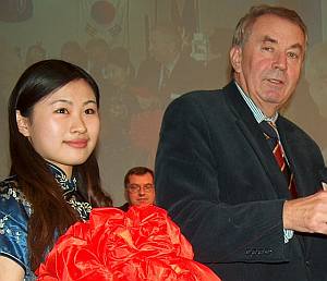 mit einer asiatischen Schönheit bei der Eröffnung des "Asien-