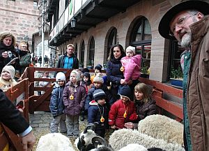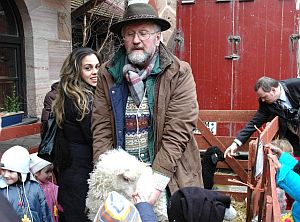 Der Neumarkter Stadtrat und Schäfer Johann Georg Glossner trieb eine kleine Herde am Freitag zur Eröffnung des Ostermarktes in einem Pferch im Nürnberger Handwerkerhof am Königstor auf, und jeder, vor allem der kleinen Besucher, durfte die wolligen Tiere anfassen und streicheln. Aus berufenem Munde informierte der Tierzüchter über die Bedeutung des Schafes als heimische Nutztierrasse.