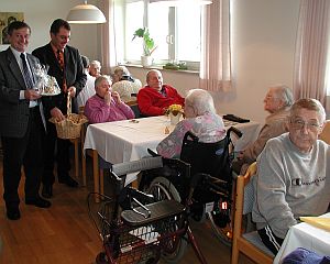 Nach der Begrüßung durch Heimleiter Helmut Klein wurden bei Kaffee und Kuchen viele nette Gespräche mit den Heimbewohnern geführt. Der Nachmittag wurde dann noch durch die Übergabe kleiner Osterhasen an alle Senioren und das Pflegepersonal abgeschlossen.