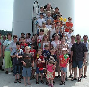 Die Oberbuchfelder Kinder vor der Windkraftanlage 1.