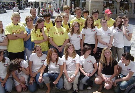 Big Sky High School in Missoula/Montana waren mit ihrer Lehrerin Barbara Nelson und einer stattlichen Abordnung ihrer Gastgaber von der Neumarkter Mädchenrealschule gekommen, begleitet von den Neumarkter Lehrkräften Katharina Macho und Klemens Graf.