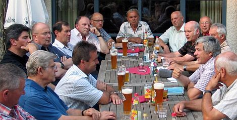 Wo lässt sich bei dem gegenwärtigen Bilderbuch-Wetter der Kontakt zum Bürger besser finden als im Biergarten? MdB Alois Karl (2. von rechts) steht den Bürgern Rede und Antwort.