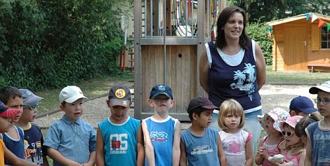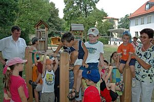 Einweihung ihres neuen Sportgeräts. Kindergartenleiterin Ger-