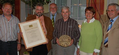 Bezirksverbandes Oberpfalz für Gartenbau und Landespflege in Oberpfraundorf ausgezeichnet. Stellvertretender Bürgermeister Andreas Porschert nahm zusammen mit dem Stadtrat Ottmar Rösch und dem Vertreter des Gartenbauvereins, Hans Mosandl, die Urkunde und das Bronzerelief von Bezirksvorsitzendem MdL Georg Stahl entgegen.