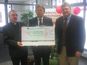 Pfarrer Gerhard Ehrl und Xaver Lang bedankten sich für die Spende mit den Worten, dass der Betrag eine Wertschätzung darstelle - "eine Wertschätzung im wahrsten Sinne des Wortes, dass die Wallfahrtskirche der Sparkasse etwas wert ist".