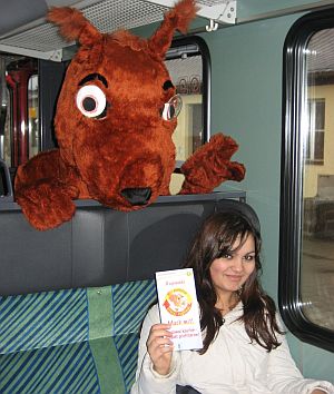 Regionaldo derzeit in vielen Pendlerzügen mit. Dabei klärt er die Pendler über die Bedeutung der regionalen Wirtschaftskreisläufe für den lokalen Arbeitsmarkt auf und macht sie auf die Vorteile seines regionalen Bonussystems aufmerksam.