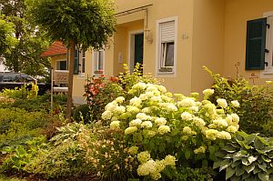 Man findet das Grundstück, wenn man in Thannhausen auf der Straße in Richtung Kiesenhof fährt. Direkt am Ortsende sticht das stilvoll gebaute Haus ins Auge, das von einem sehr vielfältigen Garten umgeben ist.