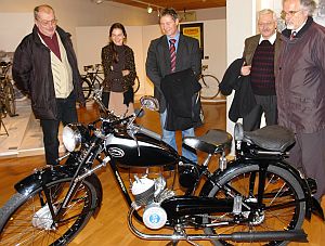 Zusammen mit den Stadträten Franz Düring und Rudi Bayerl, Kulturamtschefin Dr. Gabriele Moritz und Museumsleiterin Petra Henseler präsentierte Oberbürgermeistr Thomas Thumann am Dienstag das gute Stück. Außerdem stellten Rudolf Kriha und Willi Fuchs zwei Leihgaben vor: ein Moped mit 98er Sachs-Motor und ein durchgeschnittener Radeximotor, eine Eigenentwicklung der Firma "Express".