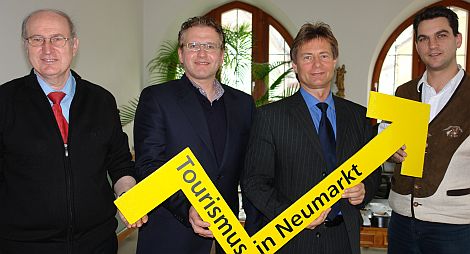 Tourismusverbands-Chef Karl Lehmeier, Tourismusreferent Christian März, OB Thomas Thumann und der Touristik-Experte der Stadt, Rainer Seitz, (v.l.)
