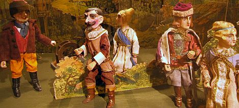 Die dortige Ausstellung zeigt mehr als 200 historische Marionetten sowie Originalbühnen und Requisiten aus der Sammlung von Anita und Hartmut Naefe. In der Zeit zwischen 1850 und 1950 entstanden beweisen die bis zu 80 Zentimeter großen Puppen und die kompletten kleinen Theaterbühnen die Vielseitigkeit der böhmischen Marionettenkunst. An einigen der Marionetten können sich die Kinder selber als Puppenspieler probieren.