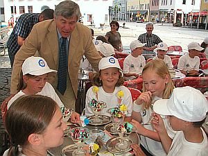 NEUMARKT. OB Alois Karl löste eine Wette ein und spendierte 44 Woffenbacher Schülern ein Eis.