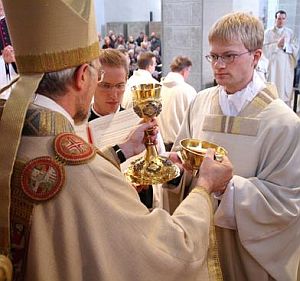 Der Priester müsse mit nur ganz Wenigem unterwegs sein zu Gott – "am besten nur mit dem, was vor Gott zählt", so der Bischof. Die Versprechen des zölibatären Lebens und des Gehorsams seien dafür ein Ausdruck. "Es geht darum, sich im Blick und im Vertrauen auf den Herrn reduzieren zu können, in Distanz zu gehen zu eigenen Planungen, Wünschen und Vorlieben, um der Fülle Gottes Raum zu schaffen".