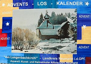 Warum sollte sich das nicht auf Neumarkt übertragen lassen, fragte sich der Hamelner und fand in seiner Ehefrau die erste begeisterte "Verbündete". Als Dritter im Bunde kam per Zufall der bekannte Neumarkter Künstler Alfons Dürr hinzu, der sofort "Feuer und Flamme" war. Er schuf das Titelbild für diesen außergewöhnlichen Adventskalender, den er am Mittwochabend dem Stiftungsvorstand mit Dr. Heinz Sperber, Vera Finn und Josef Dunkes an der Spitze vorstellte. Es zeigt das verschneite Wallfahrtskirchlein am Ende des romantischen Lengenbachtales.