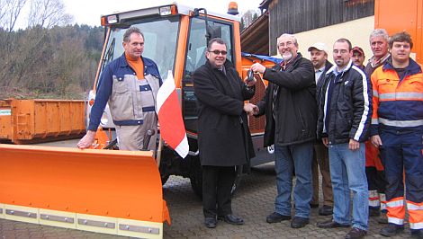 Gerade für die derzeitigen Schneeräumdienste leistet das neue Fahrzeug wertvolle Dienste, hieß es. Der Niederlassungsleiter der Herstellerfirma, Fritz Meyer, übergab das neue Winterdienstfahrzeug an Bürgermeister Alois Scherer.