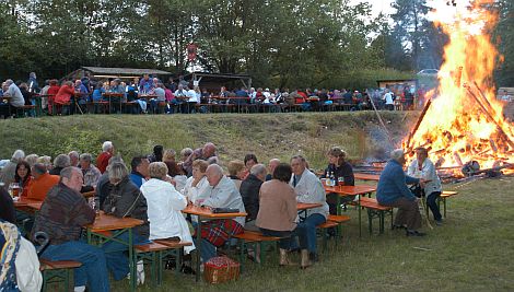 Anschliessend geht es zum gemütlichen Teil über und bei Einbruch der Dunkelheit wird wieder das große Sonnwendfeuer durch Rudolf Meier entzündet.