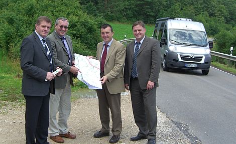 "Diese Straße bedarf dringend des Ausbaus. Wir sind sehr froh, dass sie für das Jahr 2010 aufgenommen ist", erklärten Bürgermeister Peter Braun und Vizebürgermeister Michael Gottschalk, als sie sich zusammen mit Baudirektor Josef Kreitinger und Baudirektor Josef Gilch vom Staatlichen Bauamt Regensburg, Abteilung Straßenbau, vor Ort ein Bild vom Zustand der Staatsstraße 2164 bei Brunn machten.