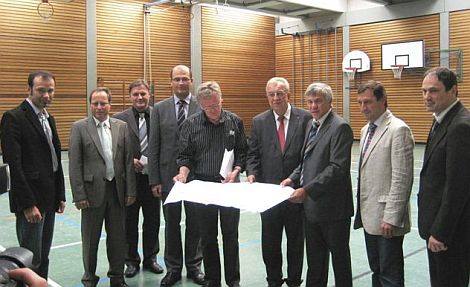 Löhner ließ sich zusammen mit MdB Alois Karl und MdL Albert Füracker sowie Vertretern der Schule und des Landratsamtes die Maßnahme durch Architekt Michael Kühnlein vorstellen. Dabei dankte er dem Bundestag und Karl als MdB für die Auflegung des Konjunkturpaketes II: "Die sehr hohe Förderung von 87,5 Prozent für die energetische Sanierung dieser Doppelturnhalle ermöglicht uns eine rasche Umsetzung und wir können zugleich eine dringend notwendige Generalsanierung vornehmen". Das Gymnasium Parsberg verfüge dann wieder über drei moderne Turnhallen.