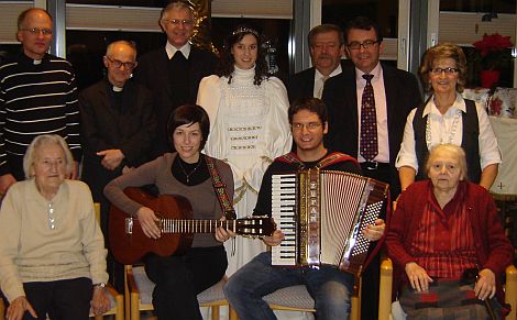 Bürgermeister Alois Scherer und das Christkind Jacqueline Kuss besuchten die Weihnachtsfeier im Seniorenheim.