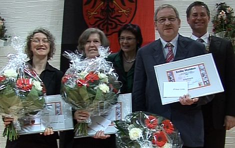 Vera Finn und OB Thumann (hintere Reihe) zeichneten die "Stillen Helden" aus.